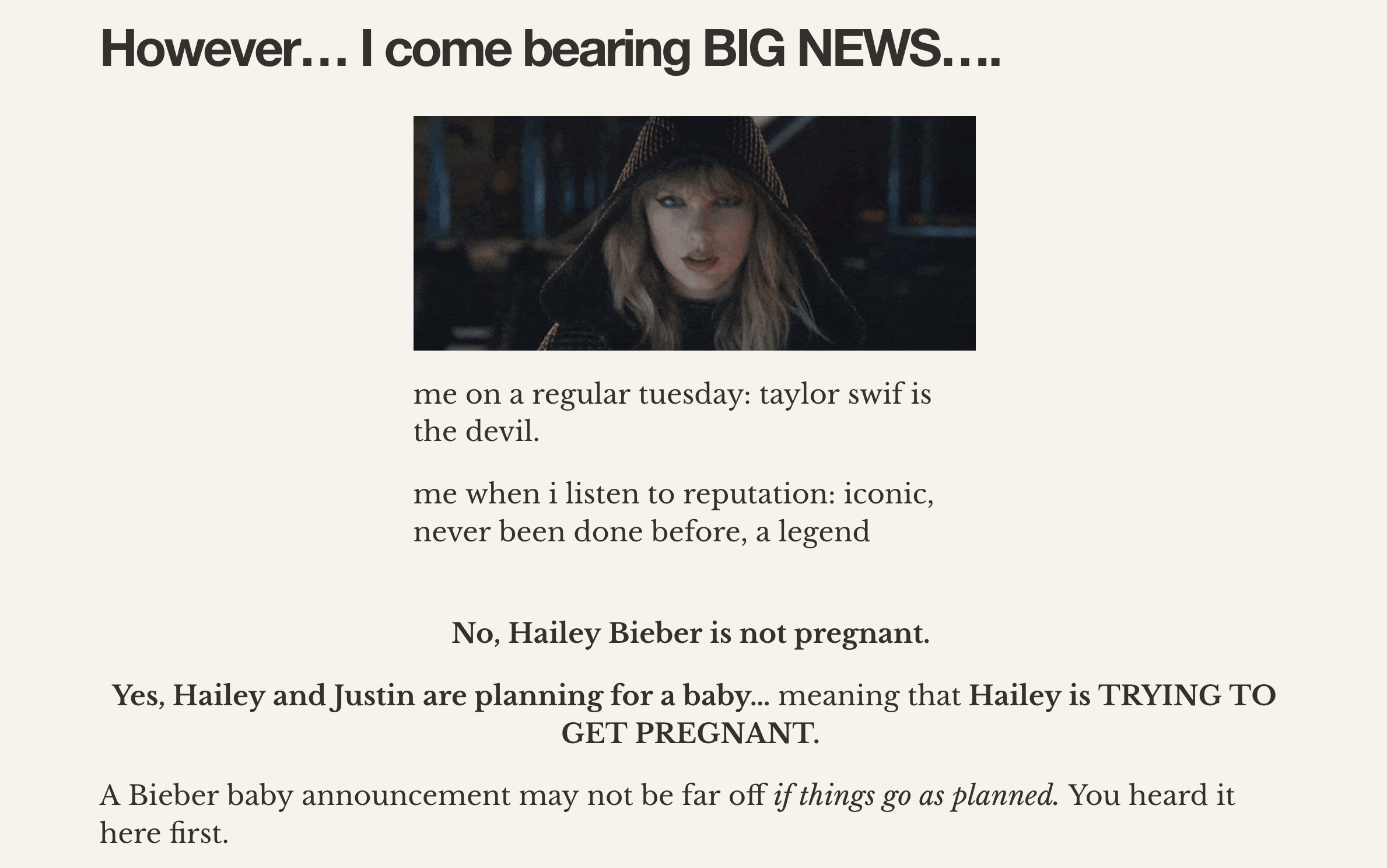 Of course, leave it to Mr. Delusion over here to think that he was mentally ready to have a kid when he was crying every day, but shoutout to our veteran-reader-circa-2016 Hailey, for knowing that he had to get it together and that she had to build her career as well, before that.
