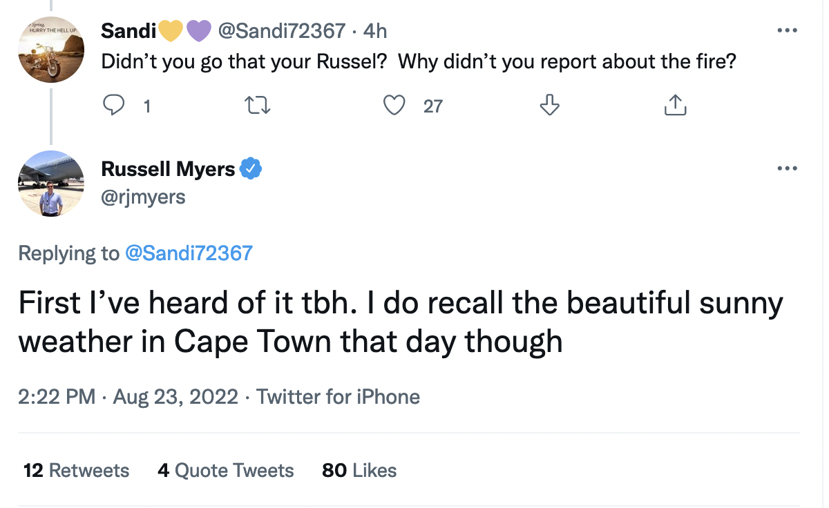 Russel Myers, a reporter who was there during the time, was questioned as to why he didn’t report about the fire. This is what he said: