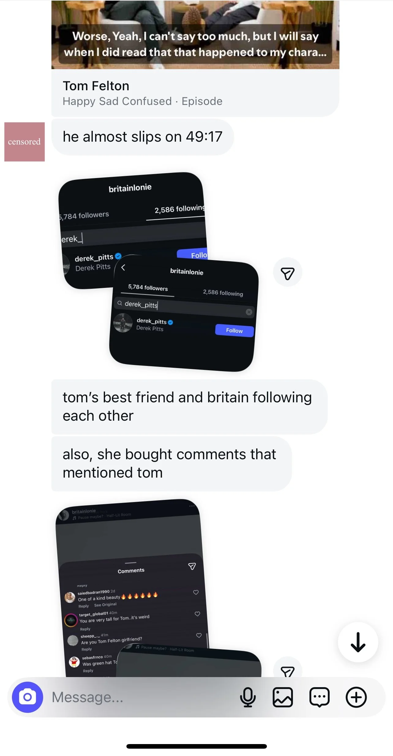 Despite how largely unknown it is that he’s dating Britain, there have been a few commentators asking her about Tom… ones that our tipster describes as “bought.”