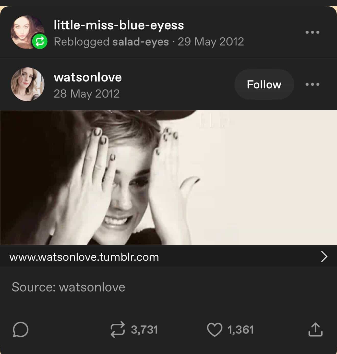 Britain seems to be an OG Harry Potter fan, having reposted Emma Watson well over a decade ago.